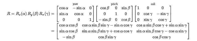 Here, the rotation matrix not using the same values throughout each axis of rotation. It would update the Xposition when doing the roll axis, then use that position when calculating the roll rotation for the Y position. Not ideal. This would probably be better to use the fancier equation to do it all in one go.